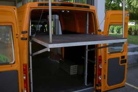 | Arbeitsbühne | Auf einer Plattform mit Geländer arbeiten Sie sicherer als auf jeder Leiter. |